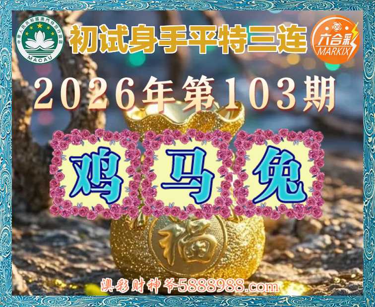 103期:『初试身手』 🪢平特三连🪢【鸡马兔】开:鸡34,马01,兔04准上榜高手