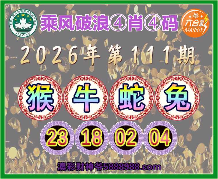 111期:《乘风破浪》 🐓④肖④码🐓【猴牛蛇兔】【23.18.02.04】开:马01