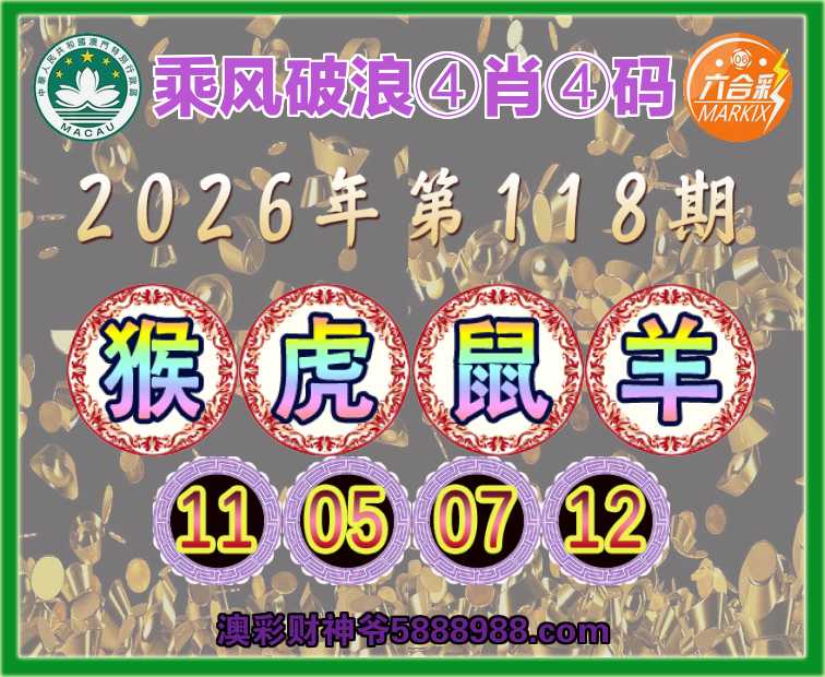 118期:《乘风破浪》 🐓④肖④码🐓【猴虎鼠羊】【11.05.07.12】开:猪08
