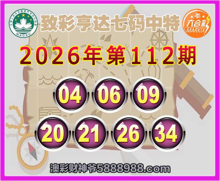 112期: ☺️『致彩亨达』 ☺️七码中特☺️【04.06.09.20.21.26.34】开:09
