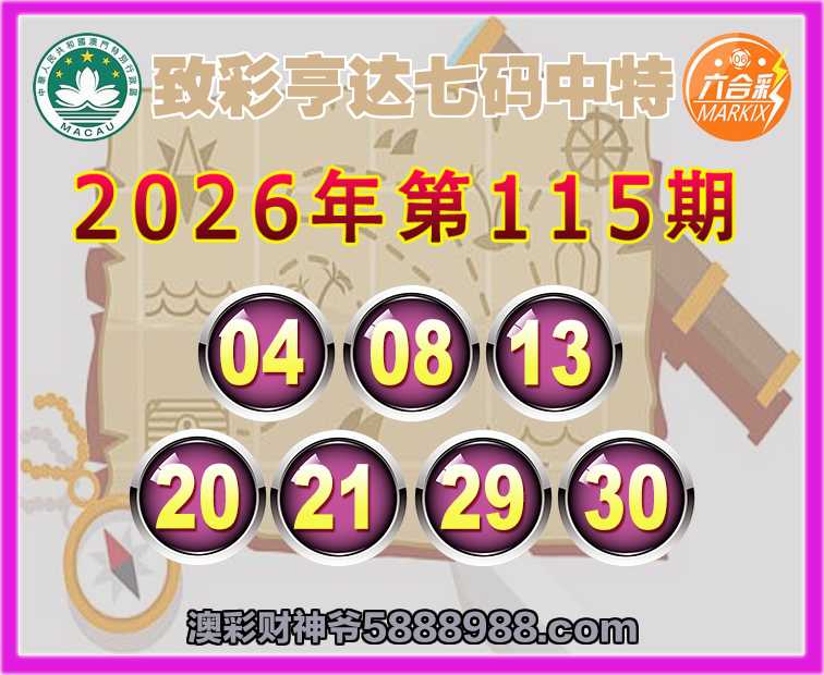 115期: ☺️『致彩亨达』 ☺️七码中特☺️【04.08.13.20.21.29.30】开:04