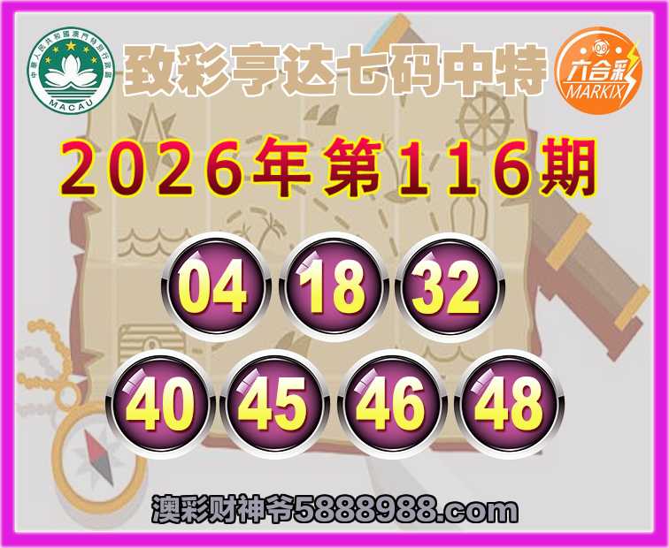 116期: ☺️『致彩亨达』 ☺️七码中特☺️【04.18.32.40.45.46.48】开:22